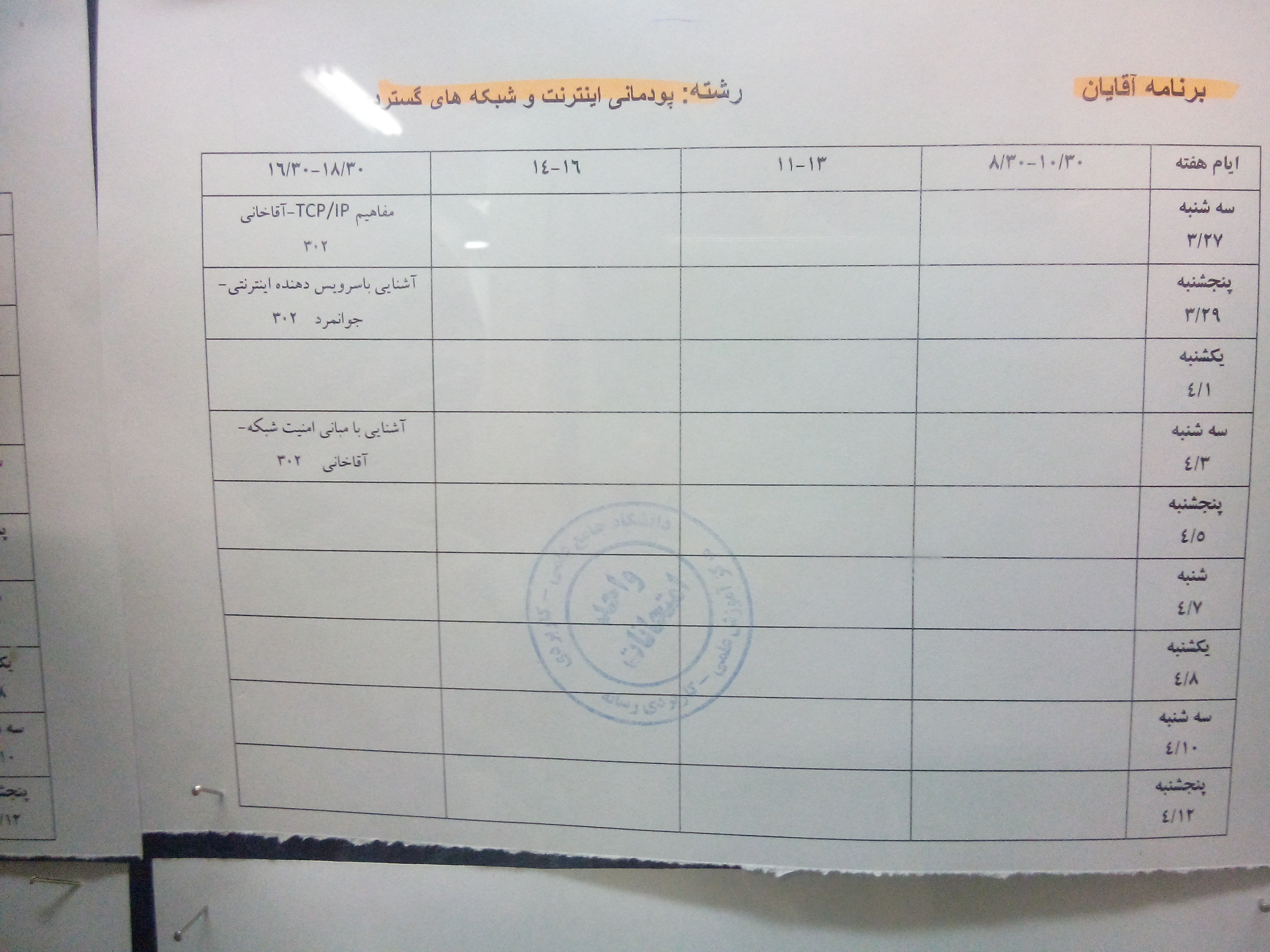 کلاس امنیت شبکه استاد آقاخانی امروز ساعت 4 بعدازظهر تشکیل میشود ...